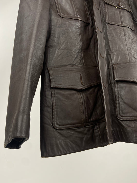 Vintage 70s Brown Leather Dagger Collar Jacket
