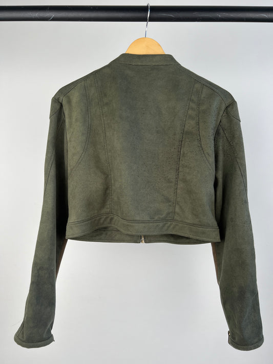 Two Tone Faux Suede Cropped Bomber Jacket