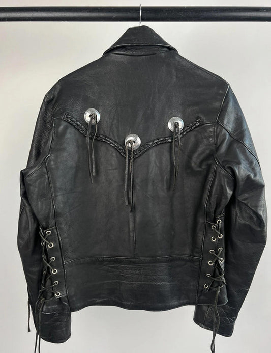 Vintage 90s Frank Thomas Leather Motorbike Jacket
