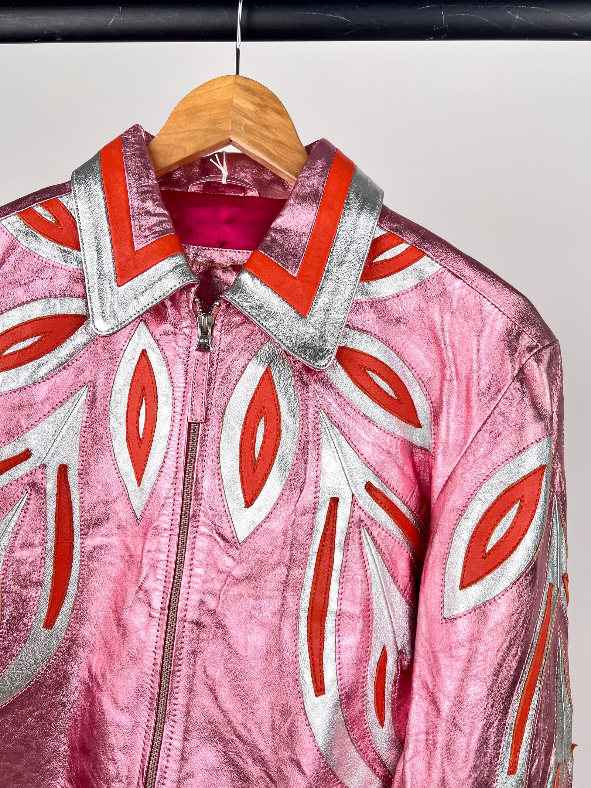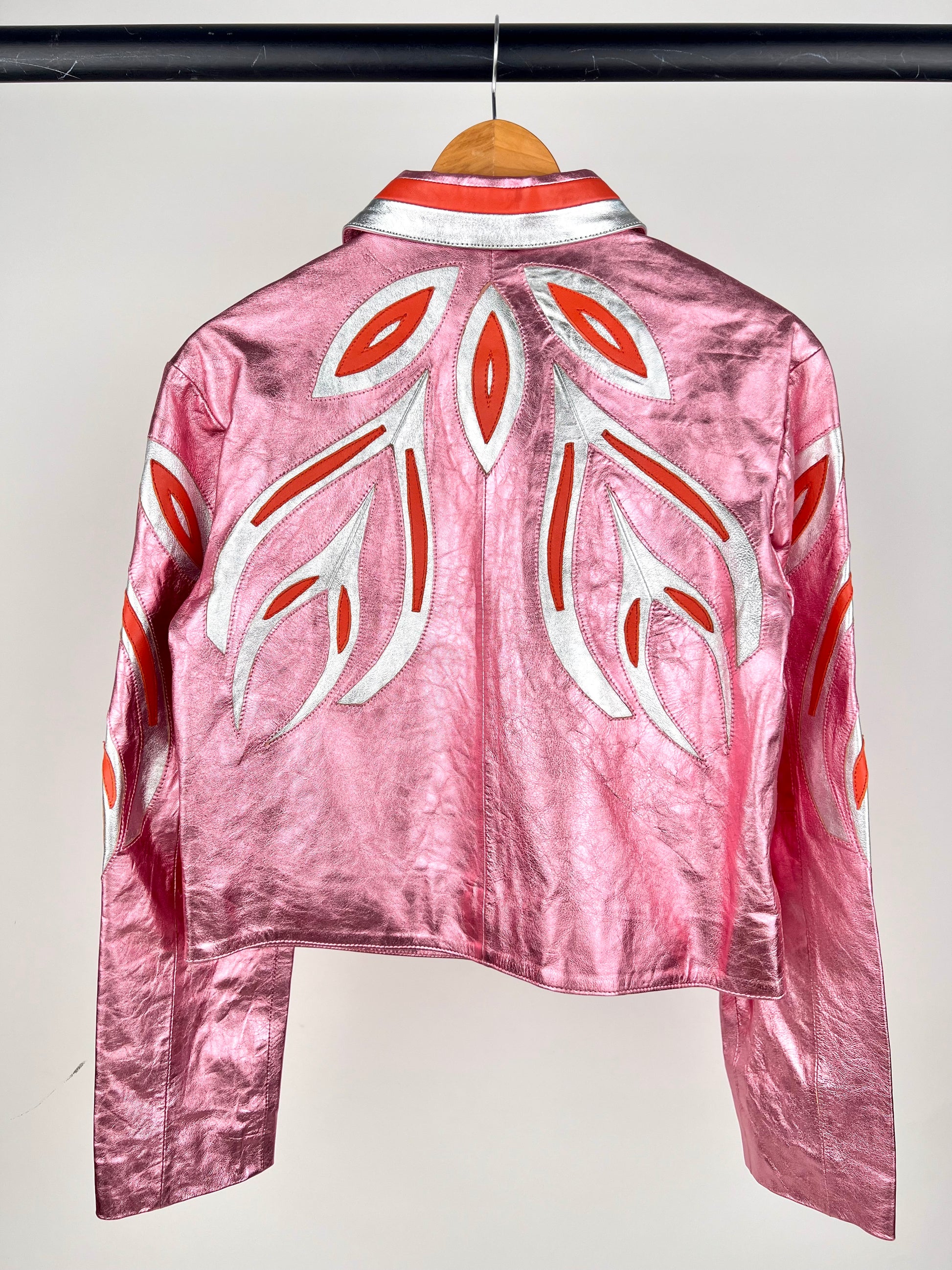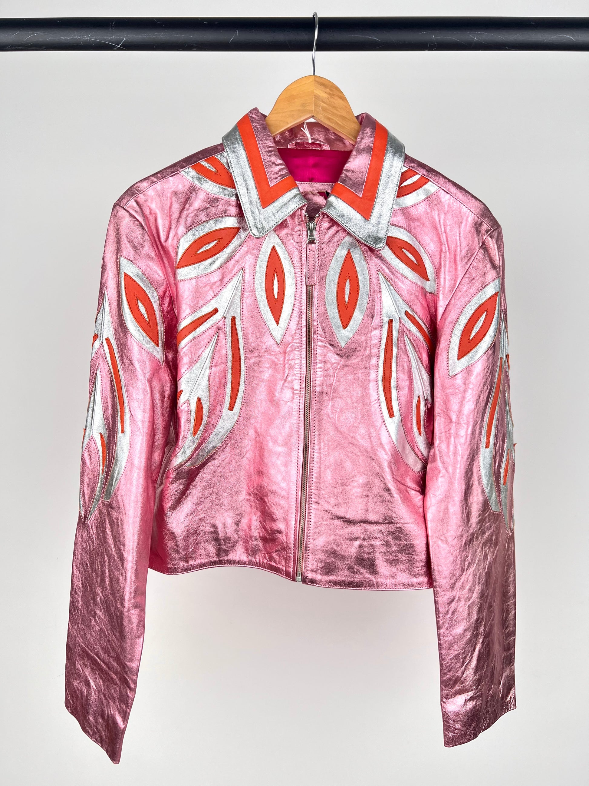 Free The People Dancassab Wind Metallic Leather Jacket. In a rare pink colourway. Sold out everywhere.