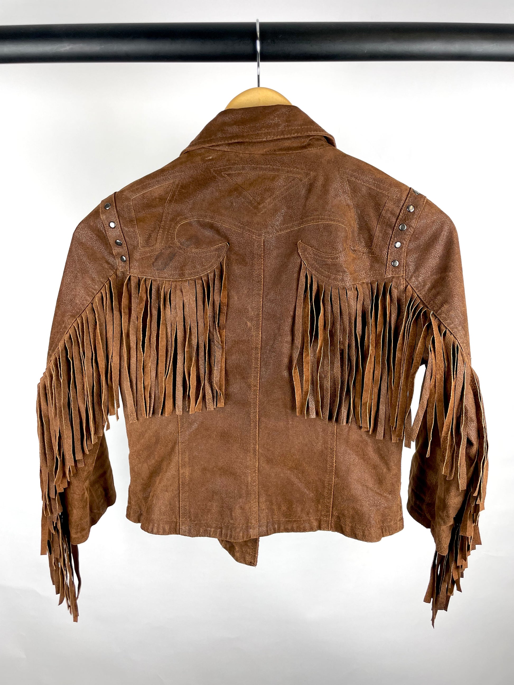 Vintage 90s Suede Tassel Jacket in a brown colourway.