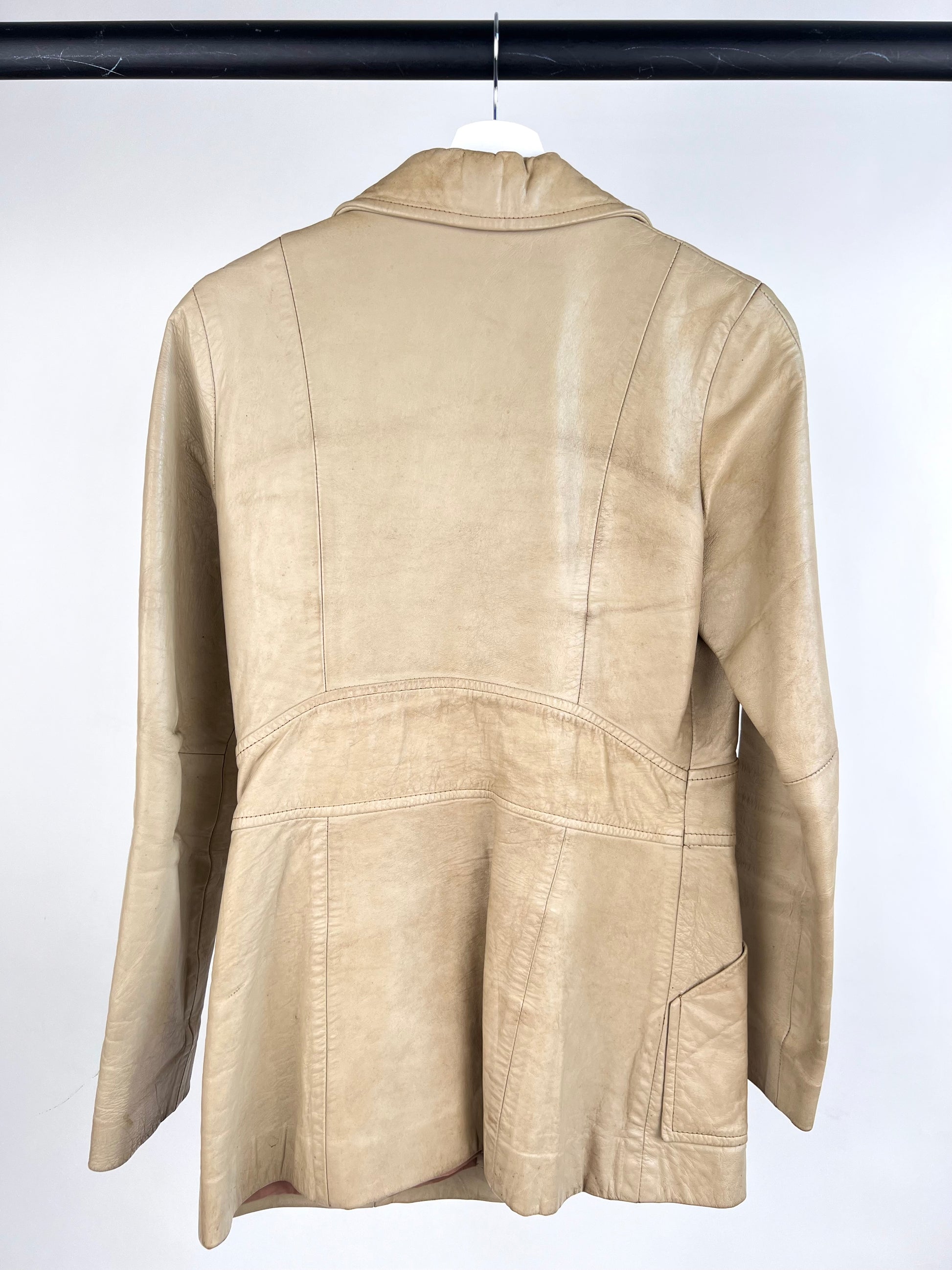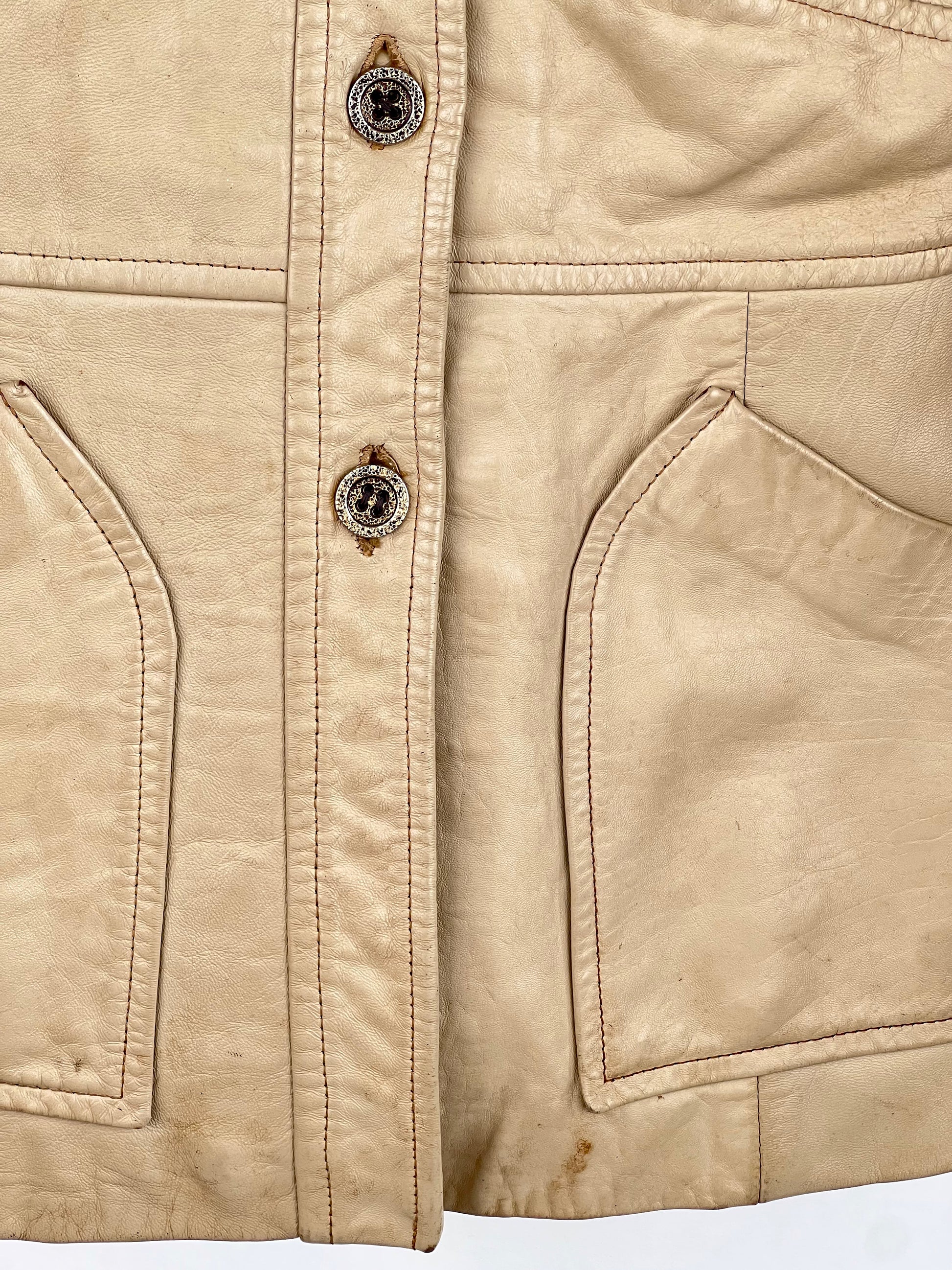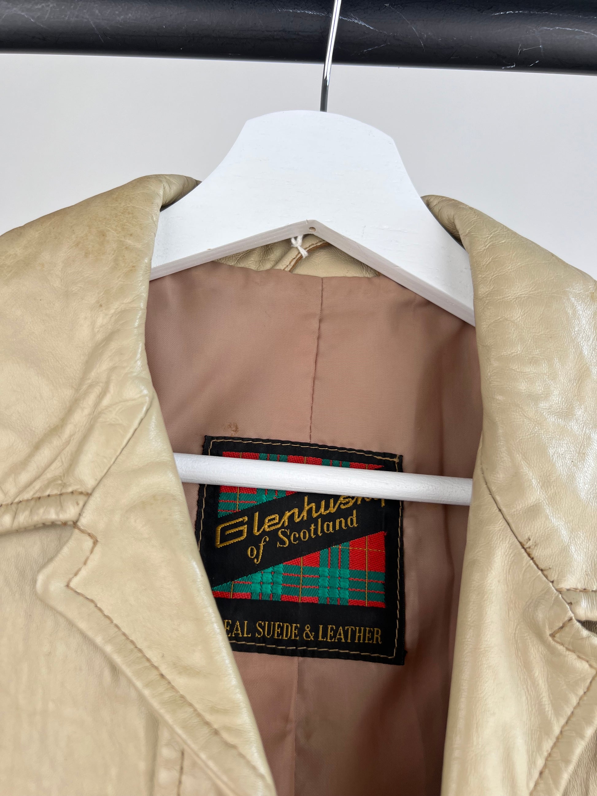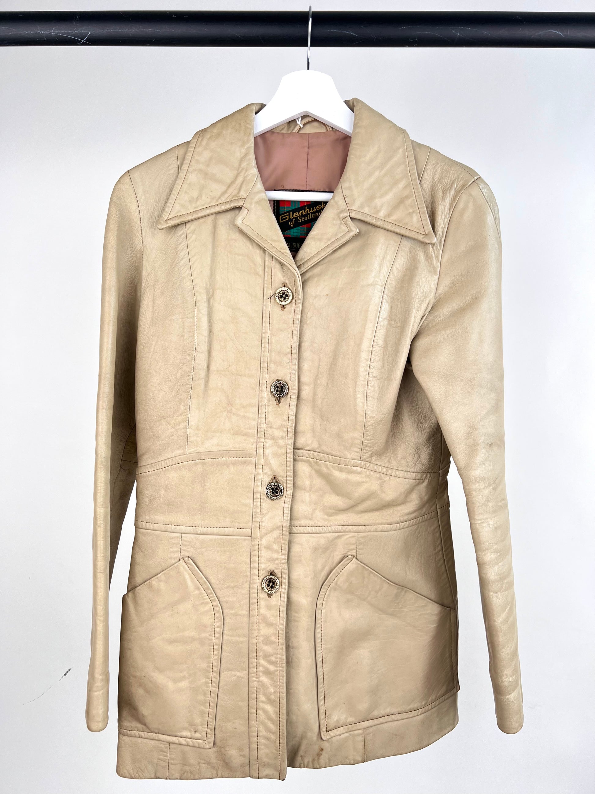 Vintage 70s Glenhusky Leather Jacket. In a cream colourway.